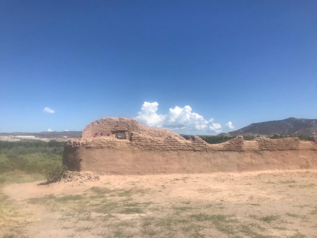 The village was founded in 1734 when Spanish settlers arrived in the Rio Chama Valley, but repeated raids by Utes and Commanche Indians caused the settlement to be abandoned. By 1750 the Spanish founded a new settlement at present day Abiquiu, about a mile up the road. The church was in use up until the 1930’s when it fell into disrepair but the property is still owned by the Archdiocese of Santa Fe.